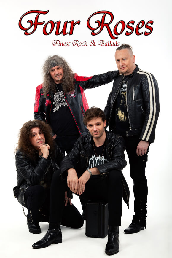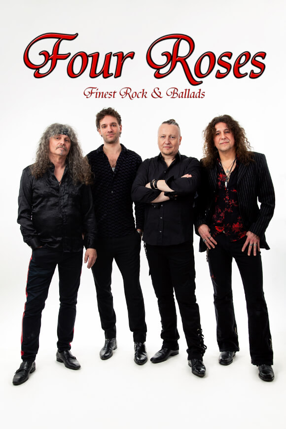 Four Roses spielten seit 2001 schon mehr als 1800 Shows, standen mit Größen des Rocks auf der Bühne, mit Nazareth, Manfred Mann’s Earth Band, The Sweet, Jennifer Rush & Band, Chris Norman & Band, The Equals, CCR, OMEGA, Smokie u.a., auch allen Größen des Ost-Rocks, Puhdys, City, Renft, Silly …